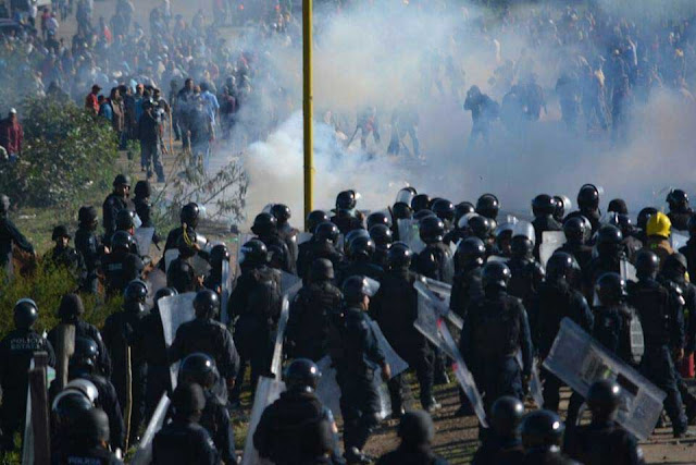 Con el paso de las horas la intensidad de los ataques ha ido en aumento, el movimiento magisterial se ha visto obligado a responder por medio de piedras, palos, barricadas y quema de vehículos.